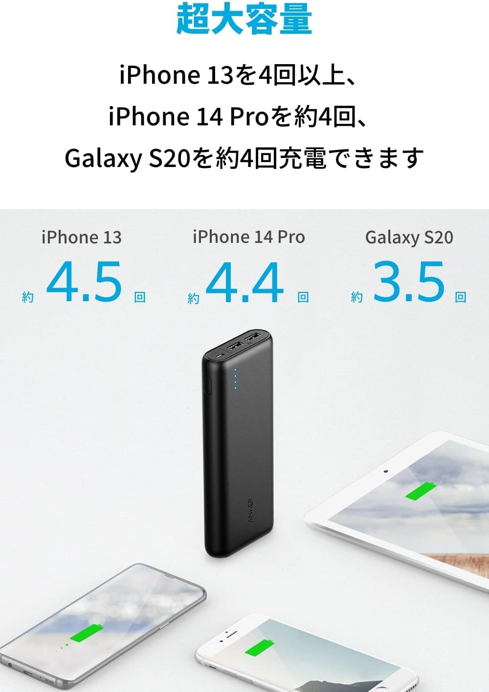 Anker PowerCore 20100 (20100mAh 2ポート モバイルバッテリー) 【PSE認証済/PowerIQ搭載/マット仕上げ】iPhone&Android対応11位 5,390円 (+4190円) 送料無料 49Pay あすつく非対応地域 Review 440件 4.62